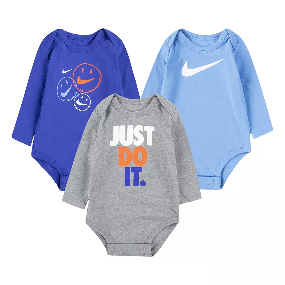 Give your little man’s wardrobe some sporty vibes with this three-pack of baby boys’ bodysuits from Nike.