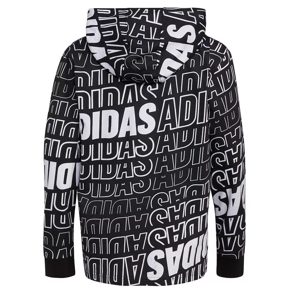 He’ll get the message across with this soft and sporty boys’ adidas long sleeve warped hooded graphic tee.