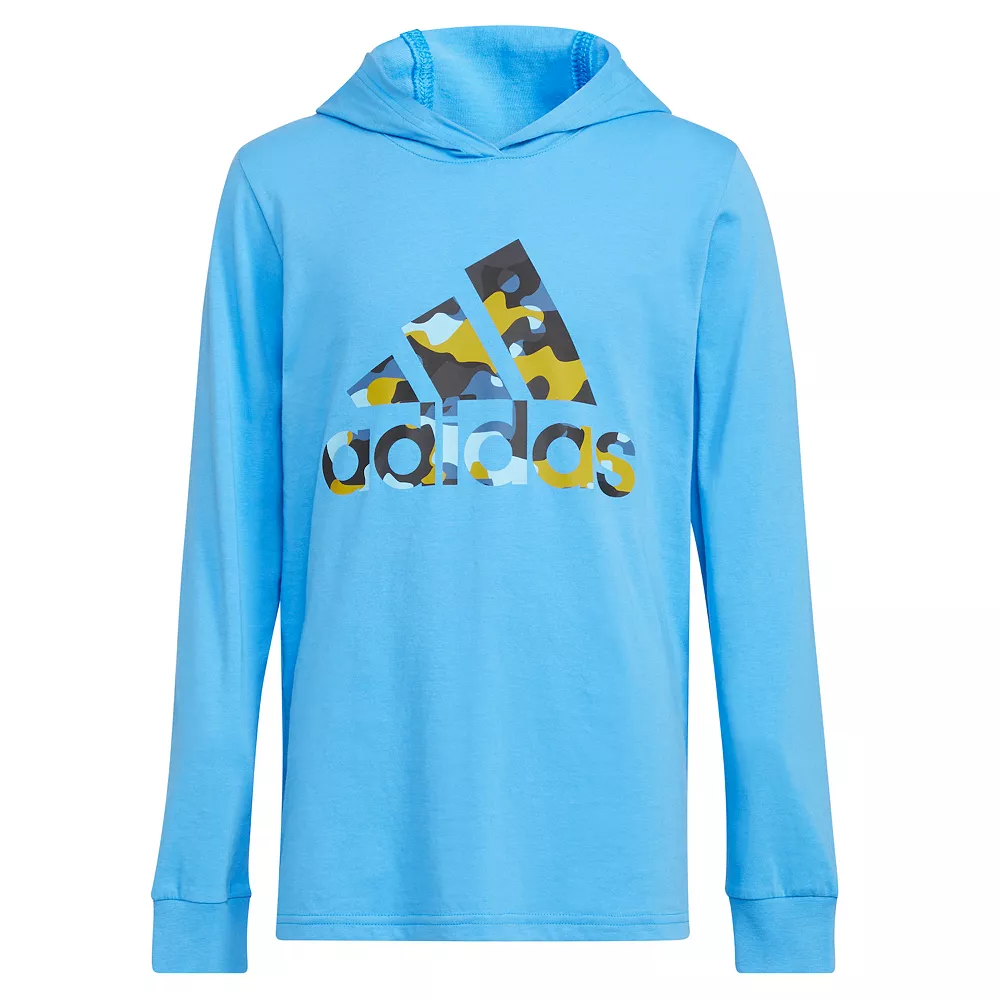 A touch of camouflage bumps up this boys’ long sleeve t-shirt. It provides the perfect backdrop for the adidas Badge of Sport design. Soft cotton means he’ll want to wear it nonstop. Apologies in advance.