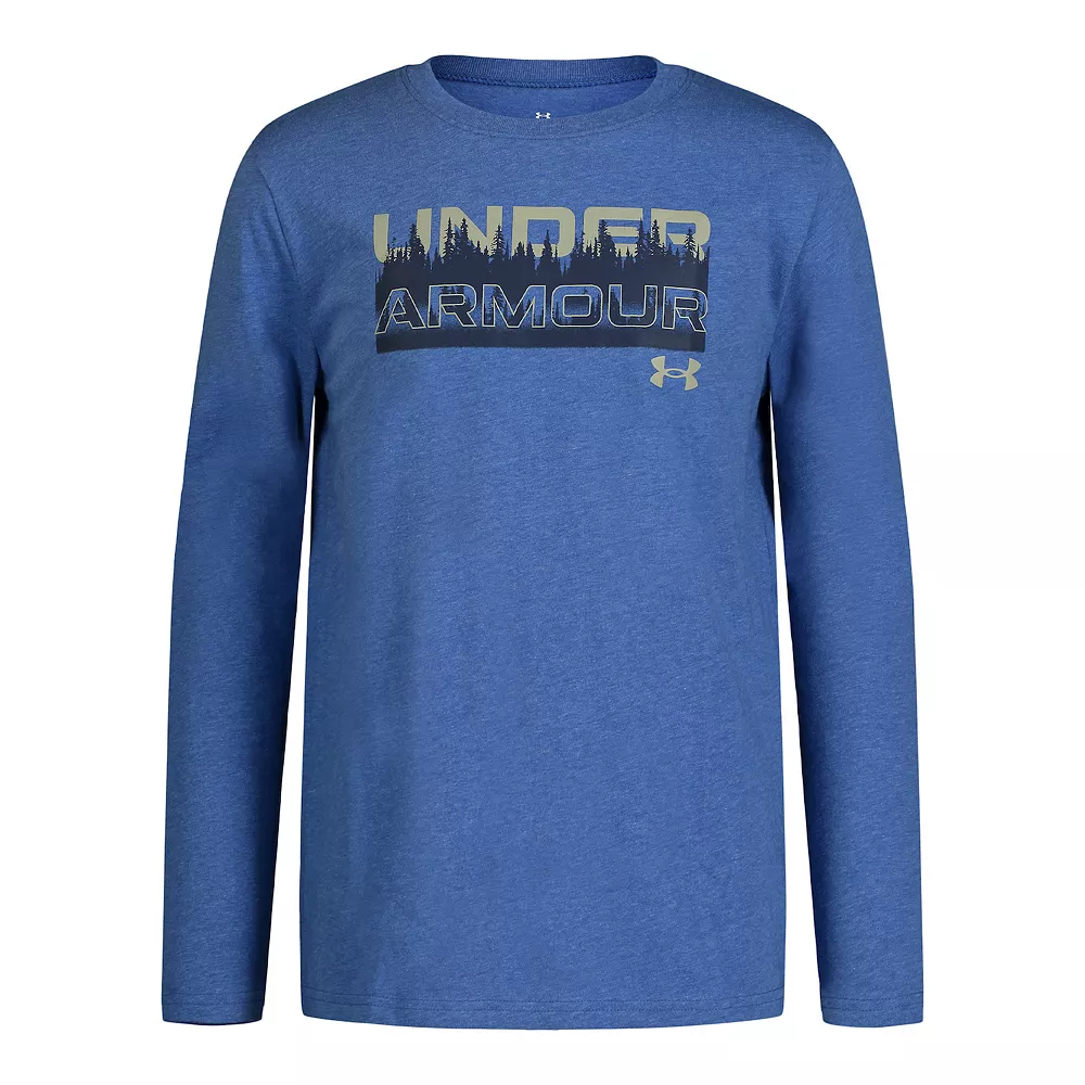 Under Armour defines cool and athletic style with this boys’ long-sleeved graphic tee.