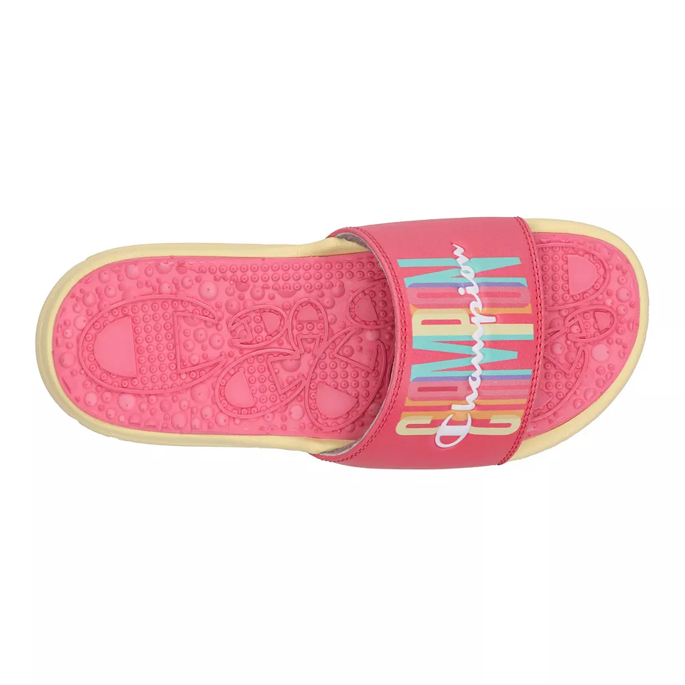 Sporty style. Put your best foot forward in these women’s slide sandals from Champion.