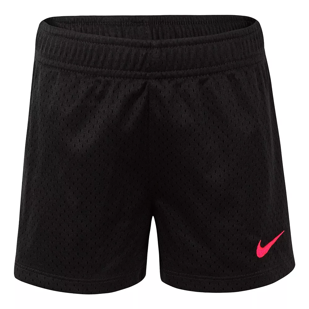 Featuring a breathable-mesh design, she’ll be cool and comfortable in these girls’ Nike shorts. In black.