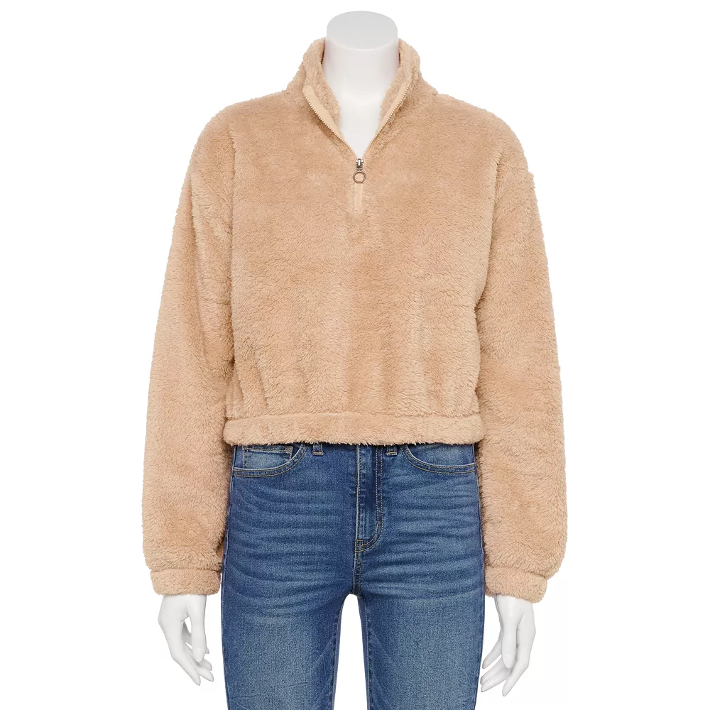 Piece together a look you’ll love with this juniors’ quarter-zip sherpa pullover from SO.