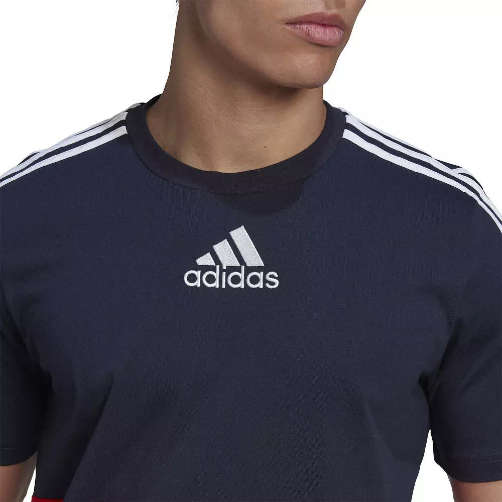 A healthy mind and body lets you do your best work. This soft adidas men’s t-shirt keeps you looking and feeling good, so you can go after the big wins. Whether you wear it to work, to train or to rest and reflect, this colorblock tee is all about quiet confidence.