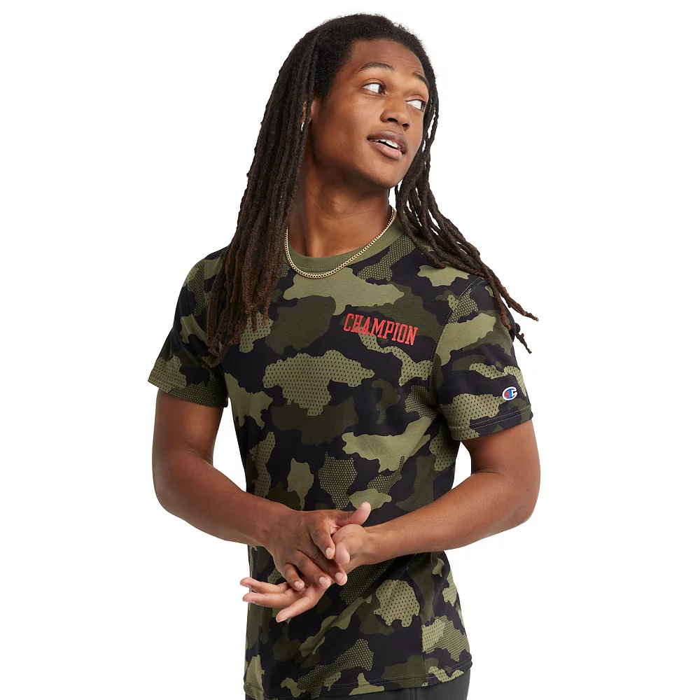 This Champion men’s t-shirt features an all-over camo print that is sure to get noticed.