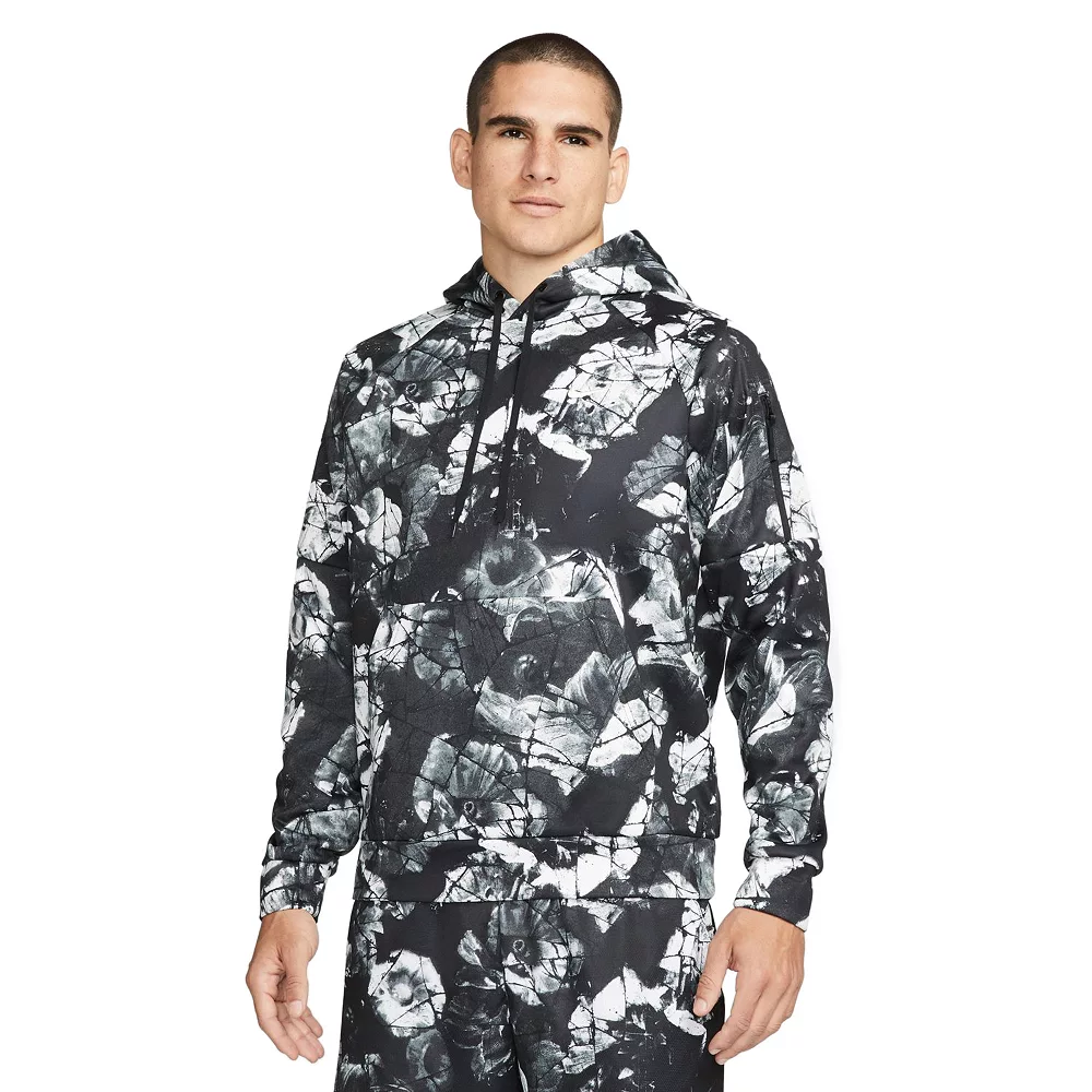 Bring the heat to your cold weather workout. On the Therma-FIT men’s pullover hoodie, supersoft fleece keeps the comfort levels high while you take your exercise routine to the next level. A relaxed feel means you can stretch and bench without anything to hold you back. An allover floral print adds a blast of color to your fitness vibe.