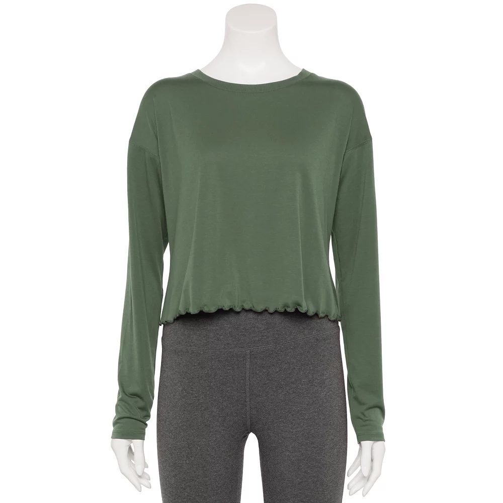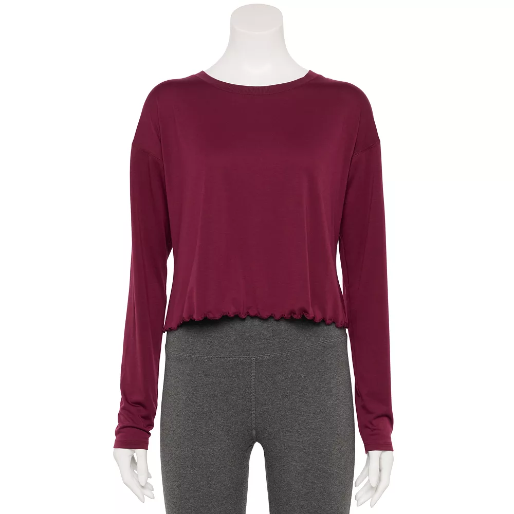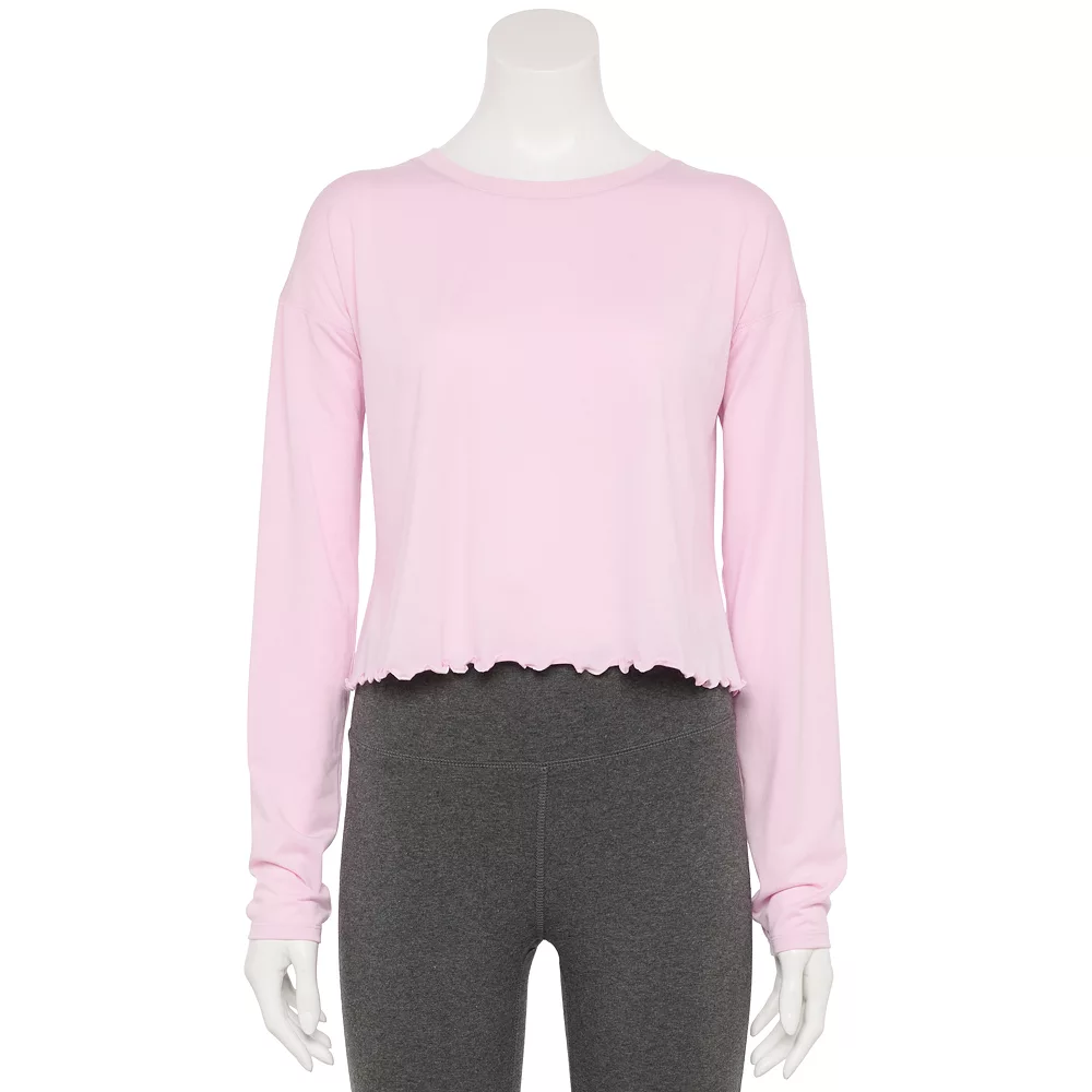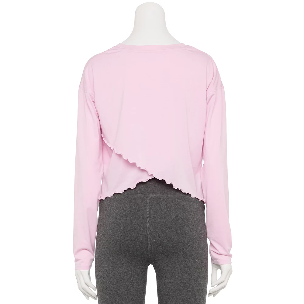 Amp up your active wardrobe with this women’s lettuce-edge cross-back top from Tek Gear.